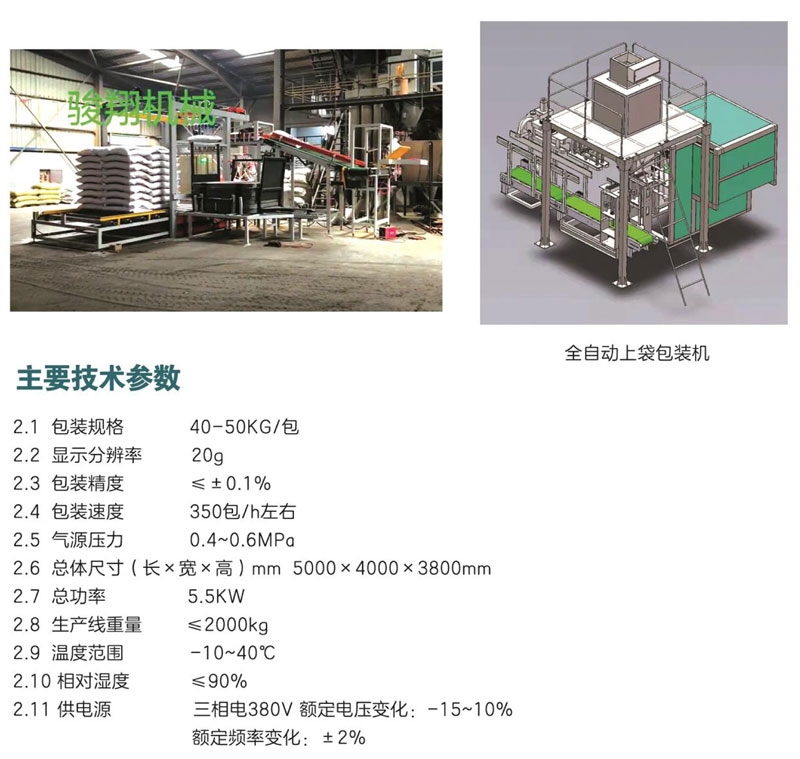 該自動包裝線適用于顆粒物料的大袋包裝,可廣泛應用于糧食、飼料、食品、輕工、化工等行業(yè)中。